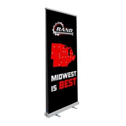 Get double the advertising power with this retractable banner display. Lightweight aluminum base. Hardware available in black or silver. Two swivel feet for stability. Shock cord pole makes setup and teardown easy. Retractor features two single-sided banners. Banners attach with snap rail on top and banner tape on bottom.